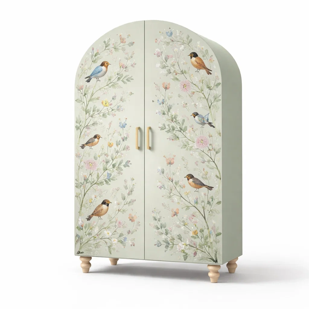 Armoire en bois avec portes doubles décor oiseaux