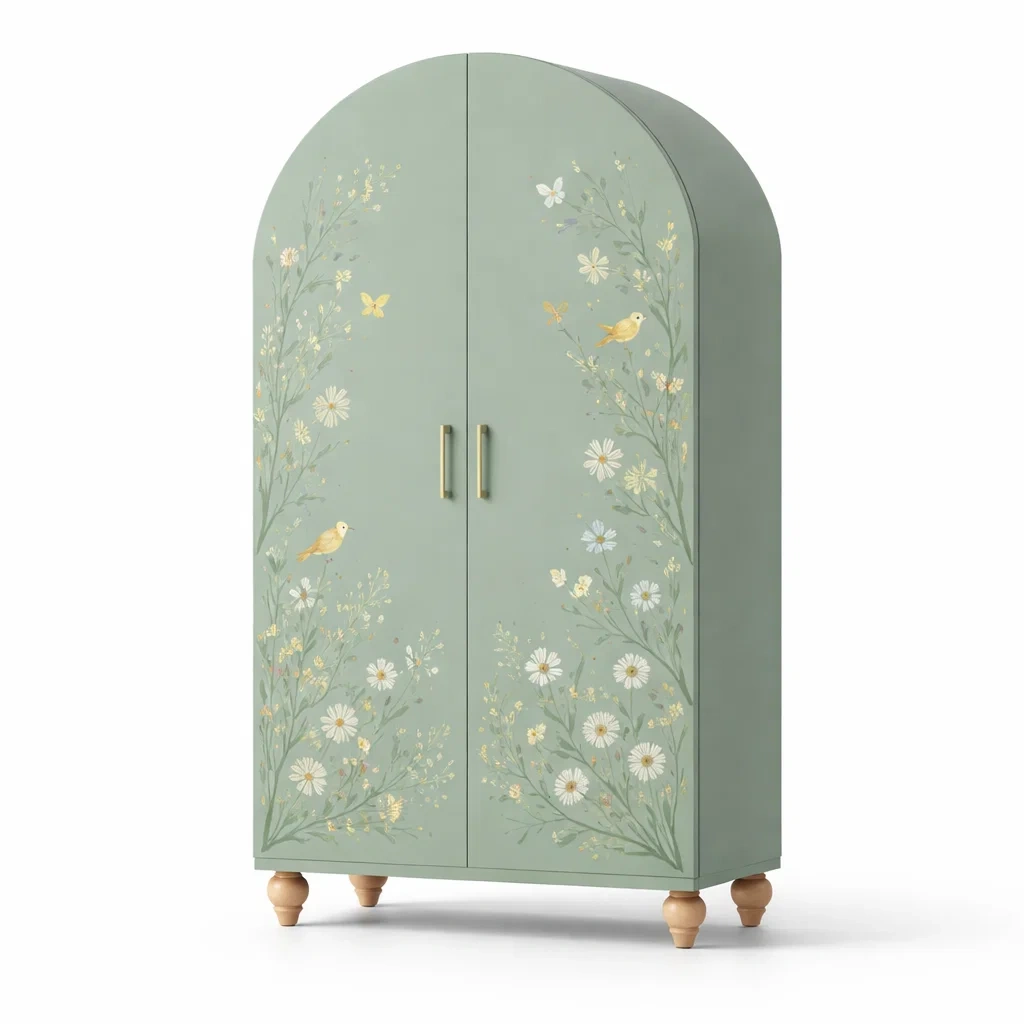Armoire en bois vert avec motifs floraux