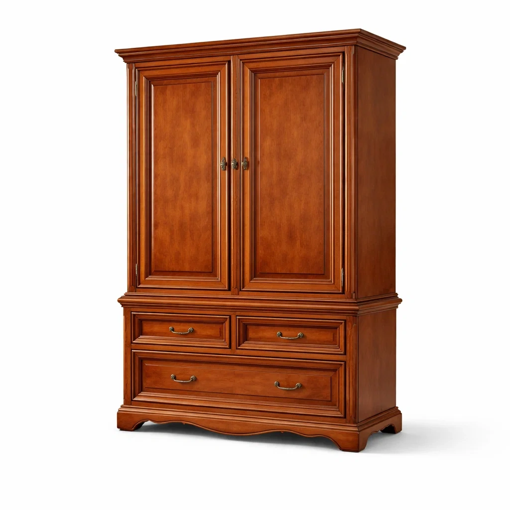 Armoire en bois avec deux portes et tiroirs marron