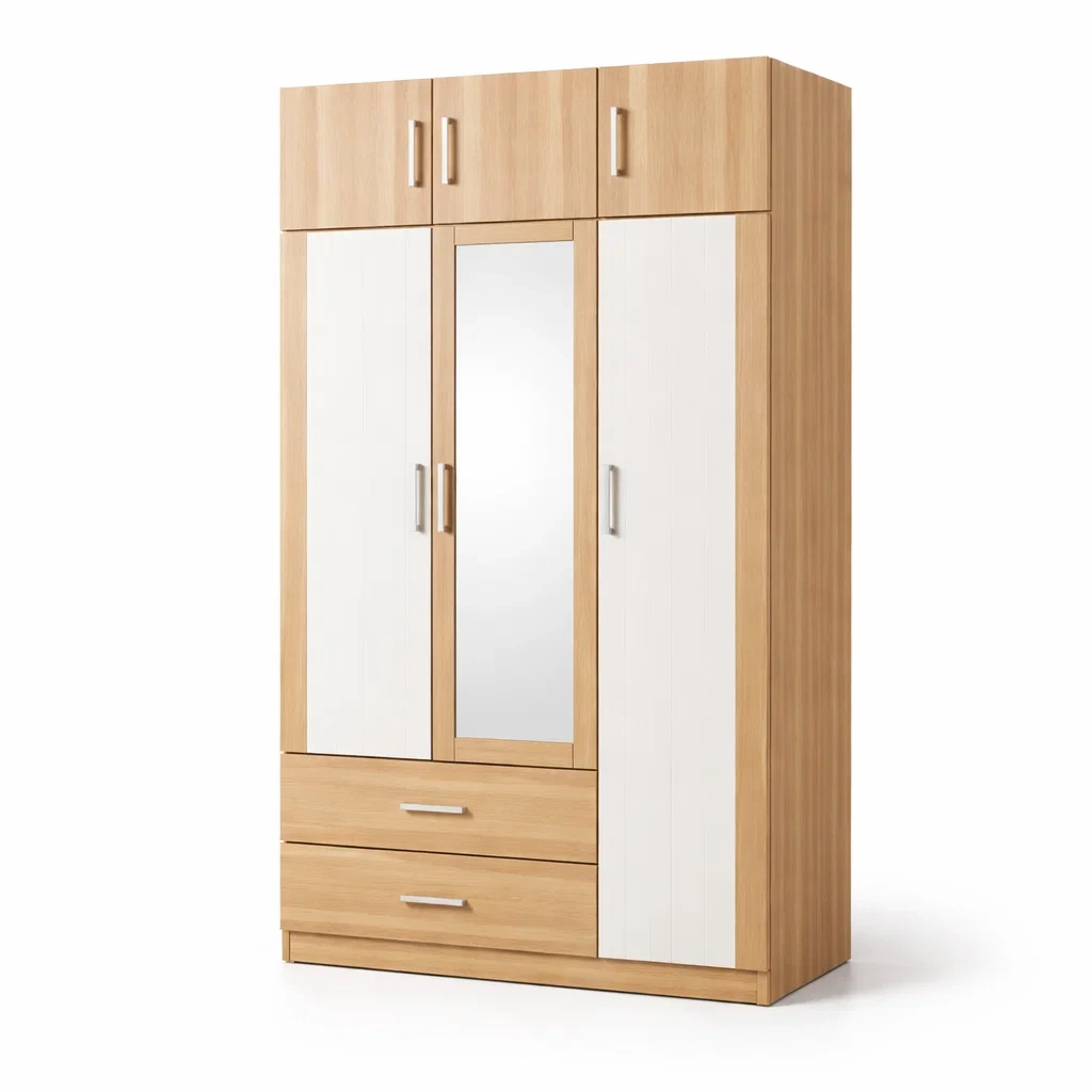Armoire en bois avec miroir 4 portes et 2 tiroirs 210x160x50 cm