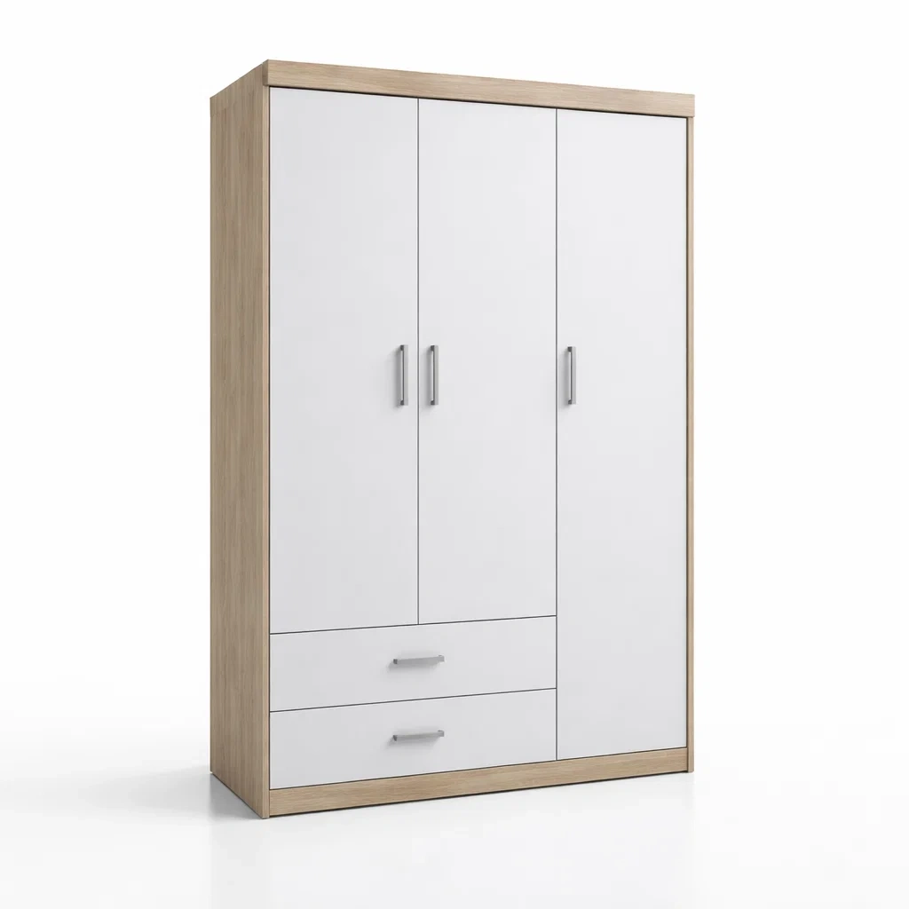 Armoire en panneaux de particules blanc et chêne avec 3 portes et tiroirs